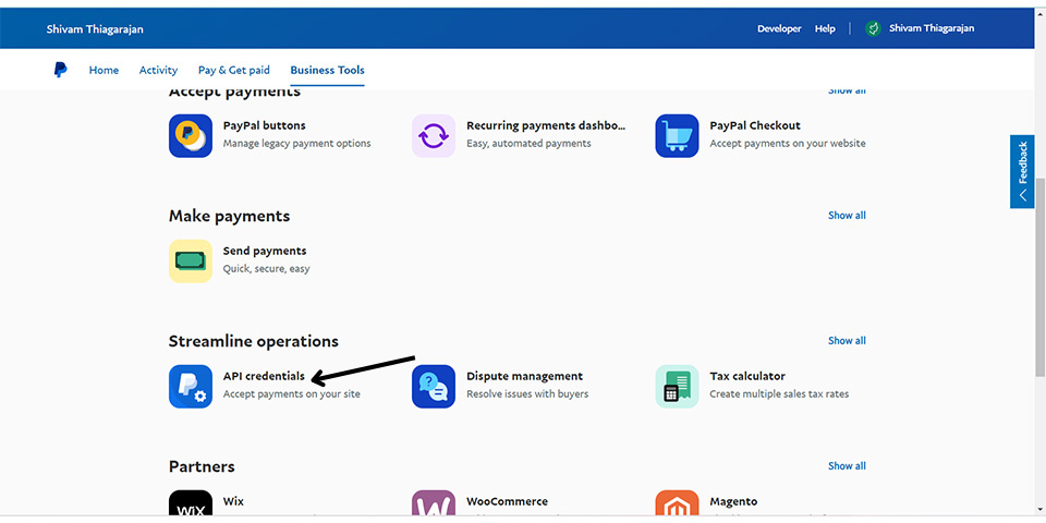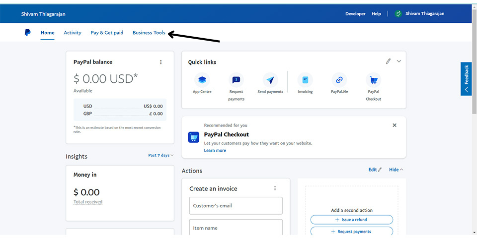 STEP 1:- Login to your Paypal account and click on Business Tools.