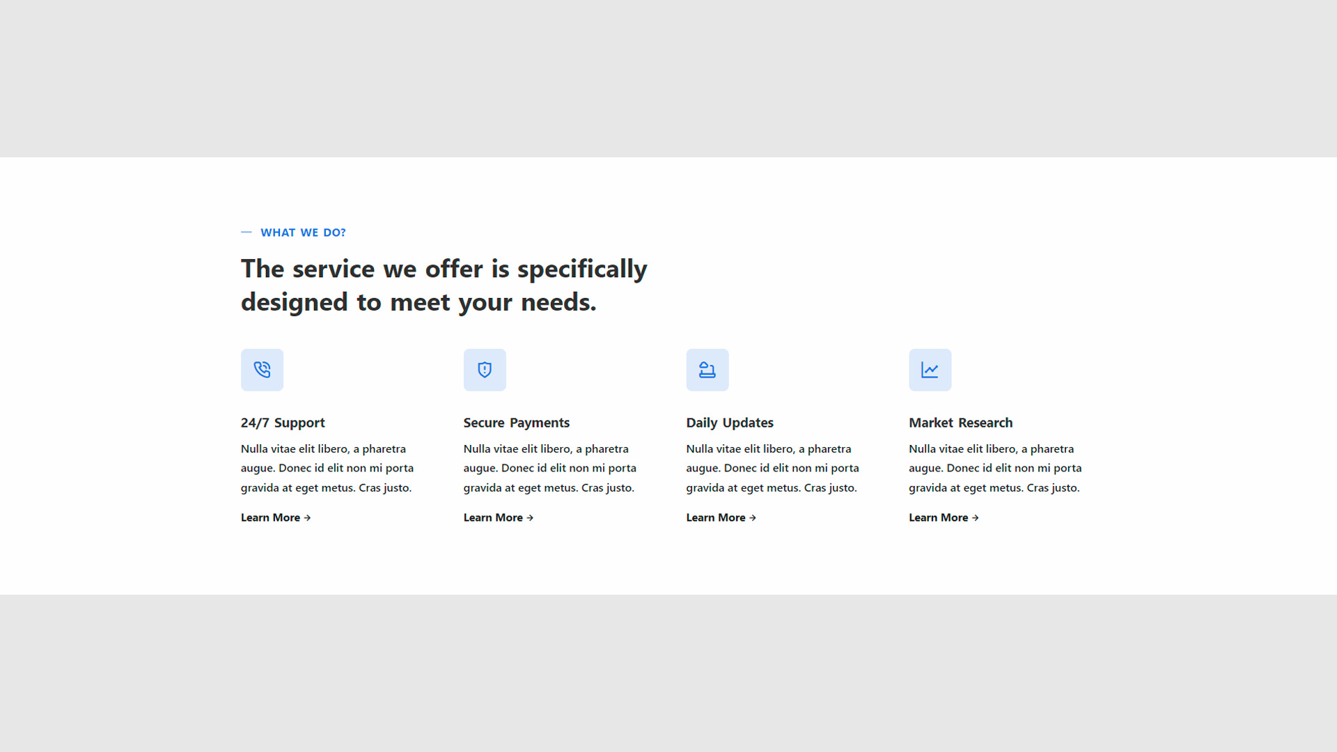 - Flexibility: Each section can be used for different purposes such as highlighting services, team members, or features.