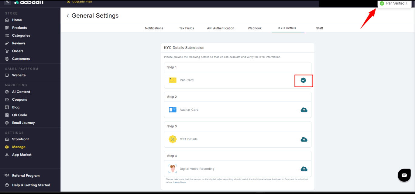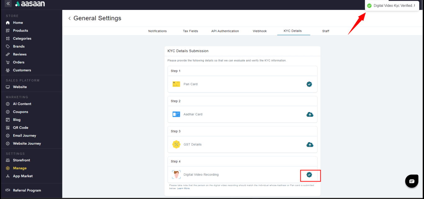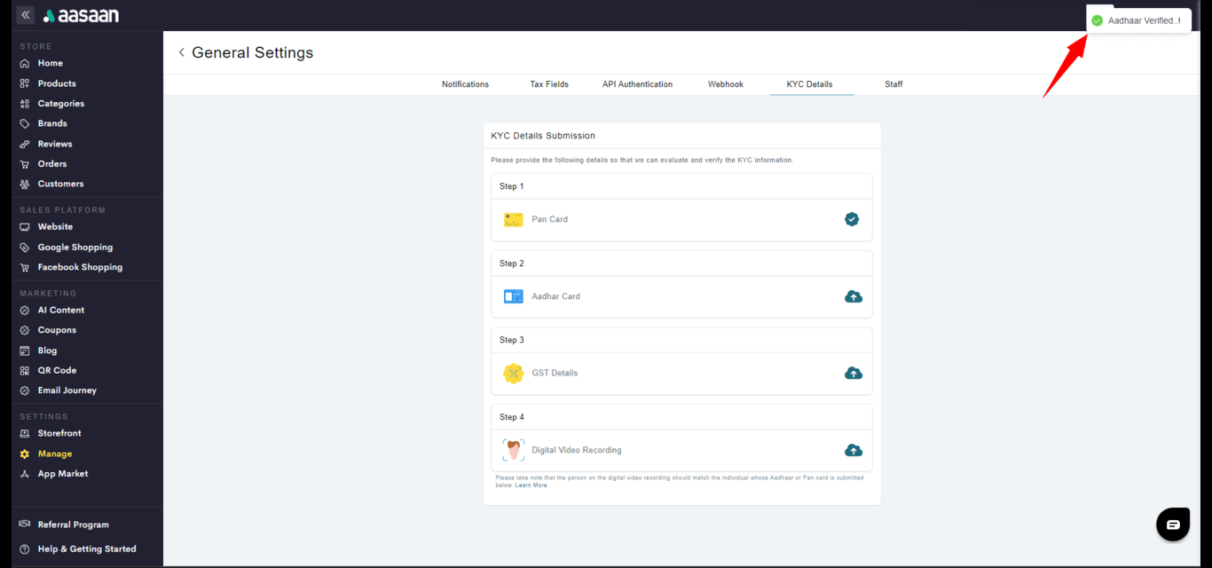 KYC verification is a mandatory step for Indian merchants using aasaan. Merchants need to verify their Aadhaar, PAN, and GST details. In this section, you will learn the guidelines for proper document submission and how to verify your details.Submit KYC