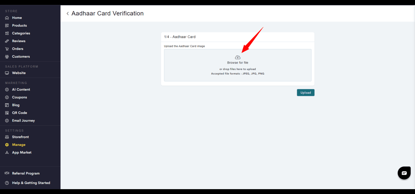 - The accepted formats for Aadhaar card submission are jpg and png.