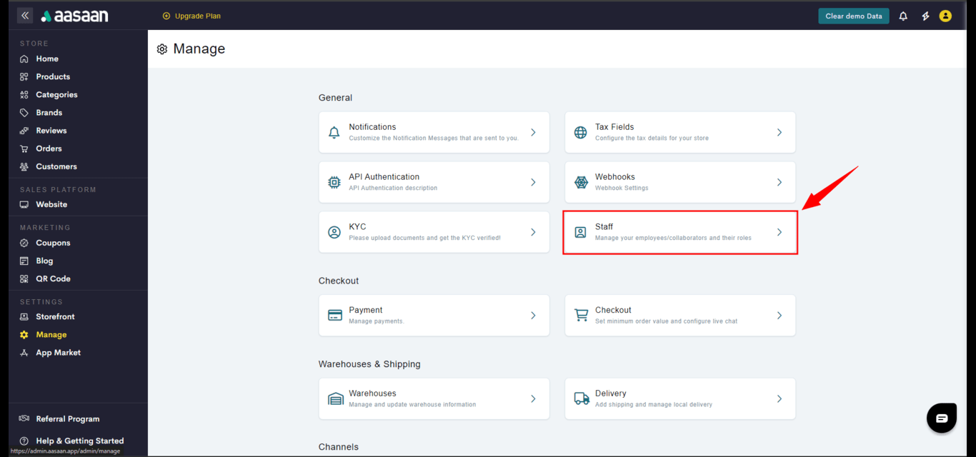 In aasaan, you can add your employees and assign them specific roles for managing your store. Here’s how you do it:STEP 1: